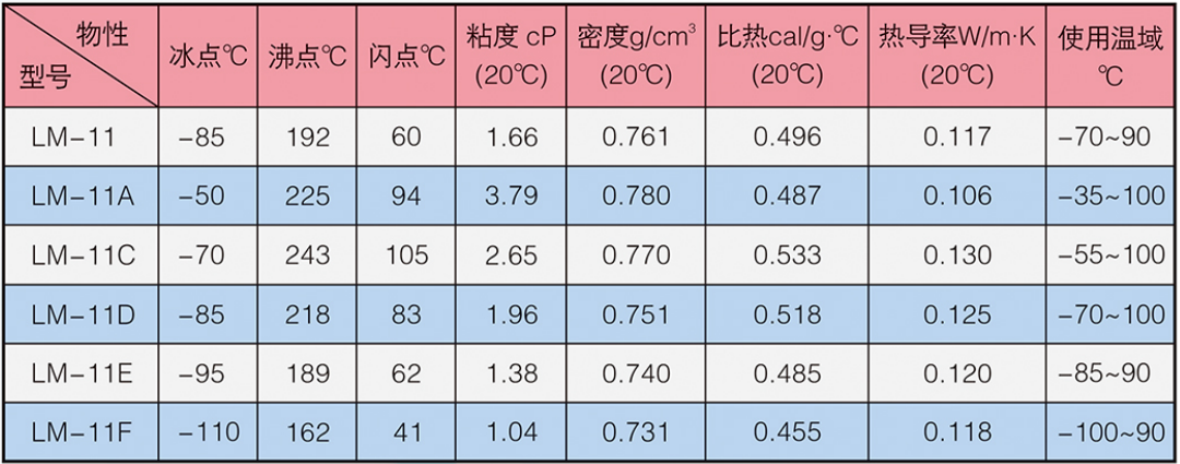 LM-11系列冰河冷媒由高級烷烴改性而成,外觀為淺色液體,不溶于水,低毒,低粘度,化學性質穩(wěn)定,可燃。
